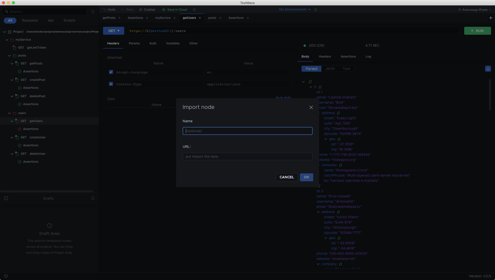 You can use quick share feature to share your request with colleagues. Just press a button to copy a specific node's url. All that you need now is to send this url to your teammate.